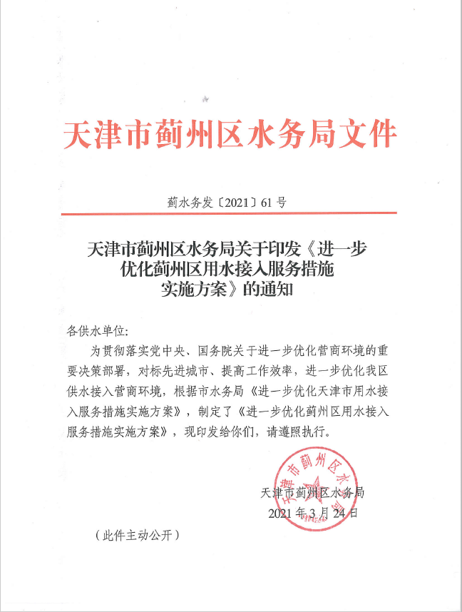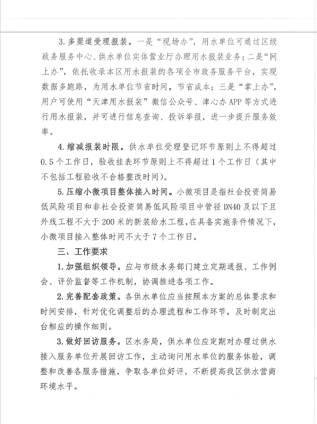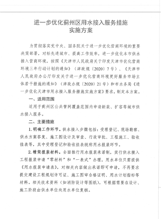 進(jìn)一步優(yōu)化薊州區(qū)用水接入服務(wù)措施實(shí)施方案