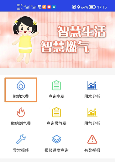 點擊首頁上的繳納水費,進入繳納水費界面。首次進入需綁定表具,如圖