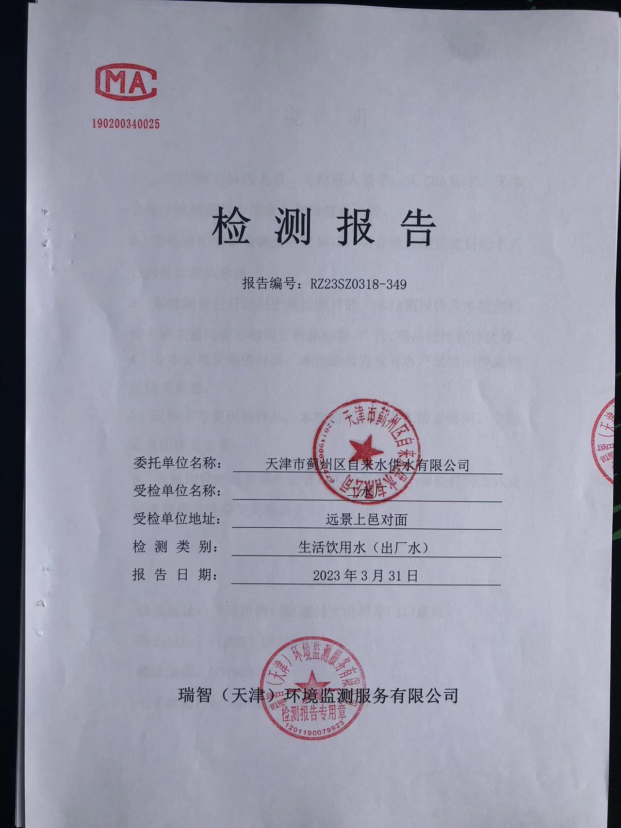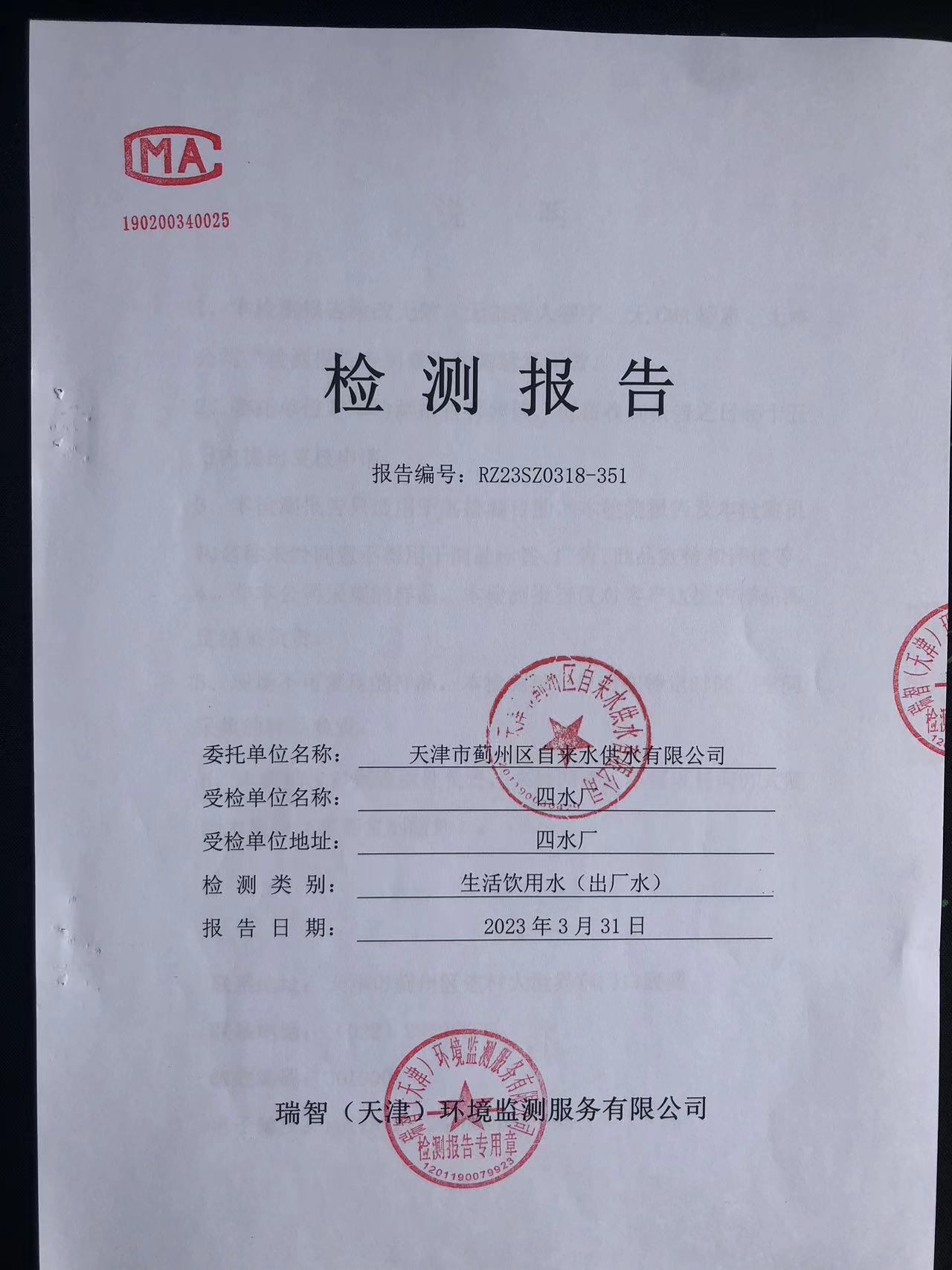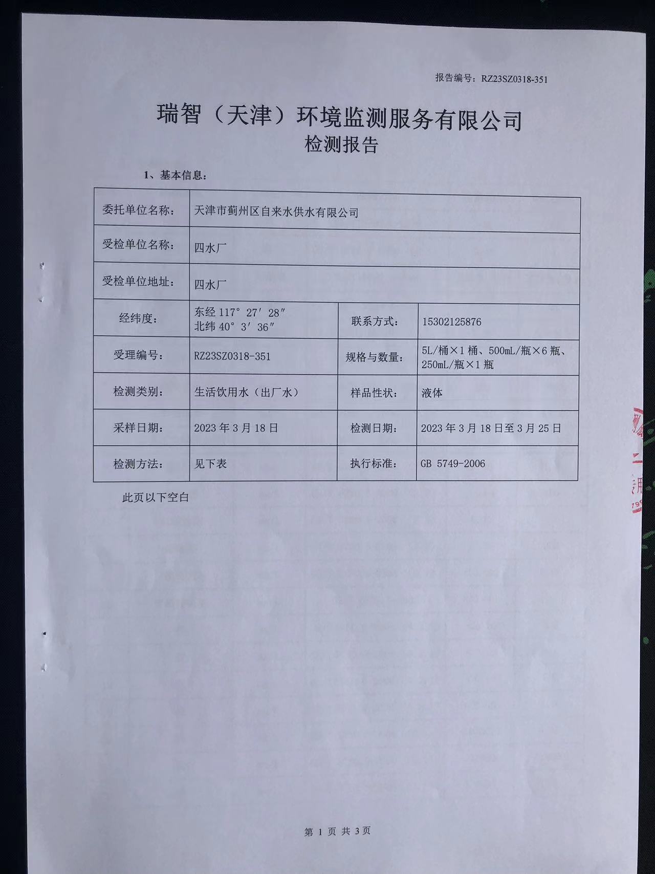 2023年3月份水質(zhì)檢測報(bào)告