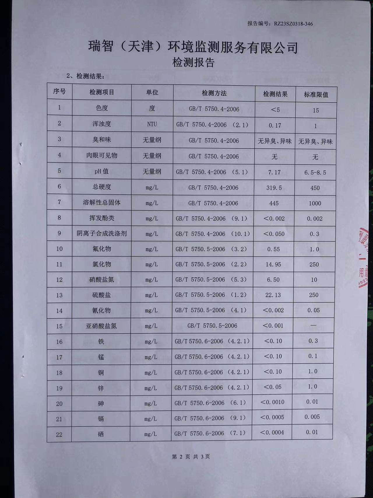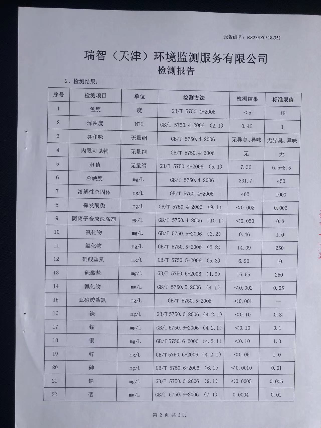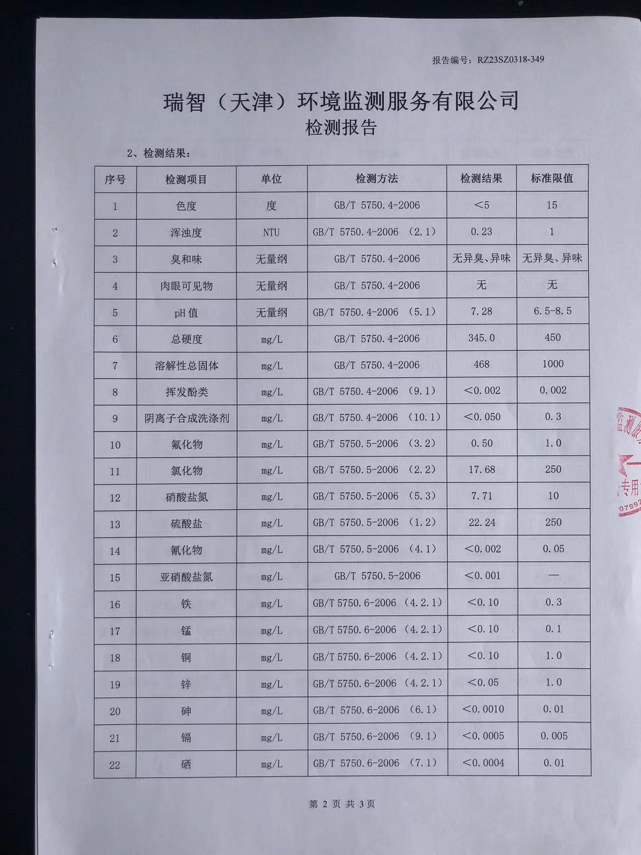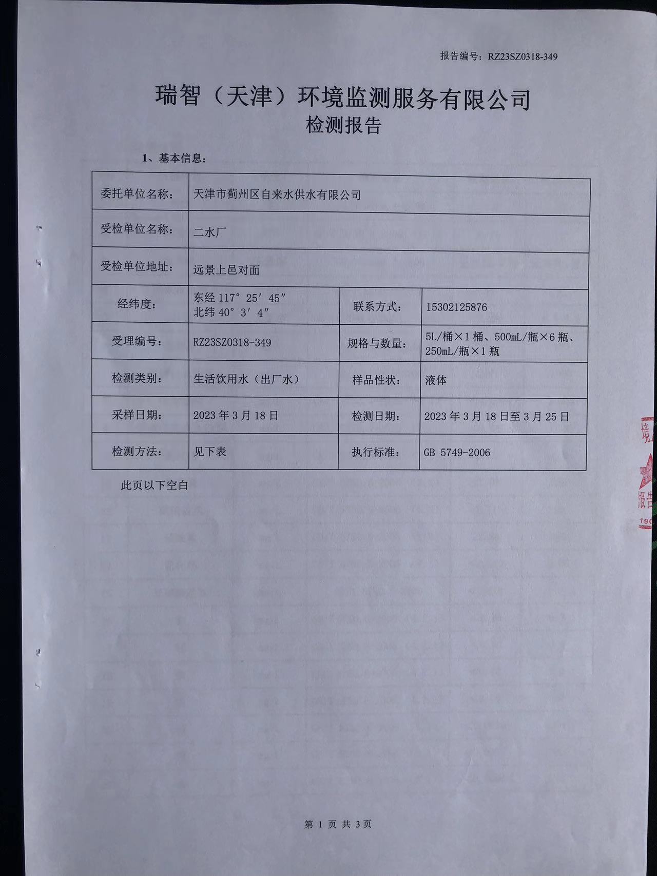 2023年3月份水質(zhì)檢測報(bào)告