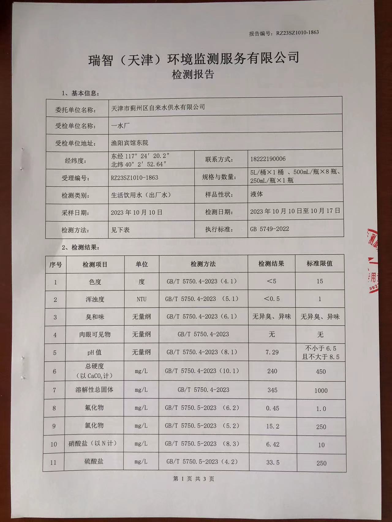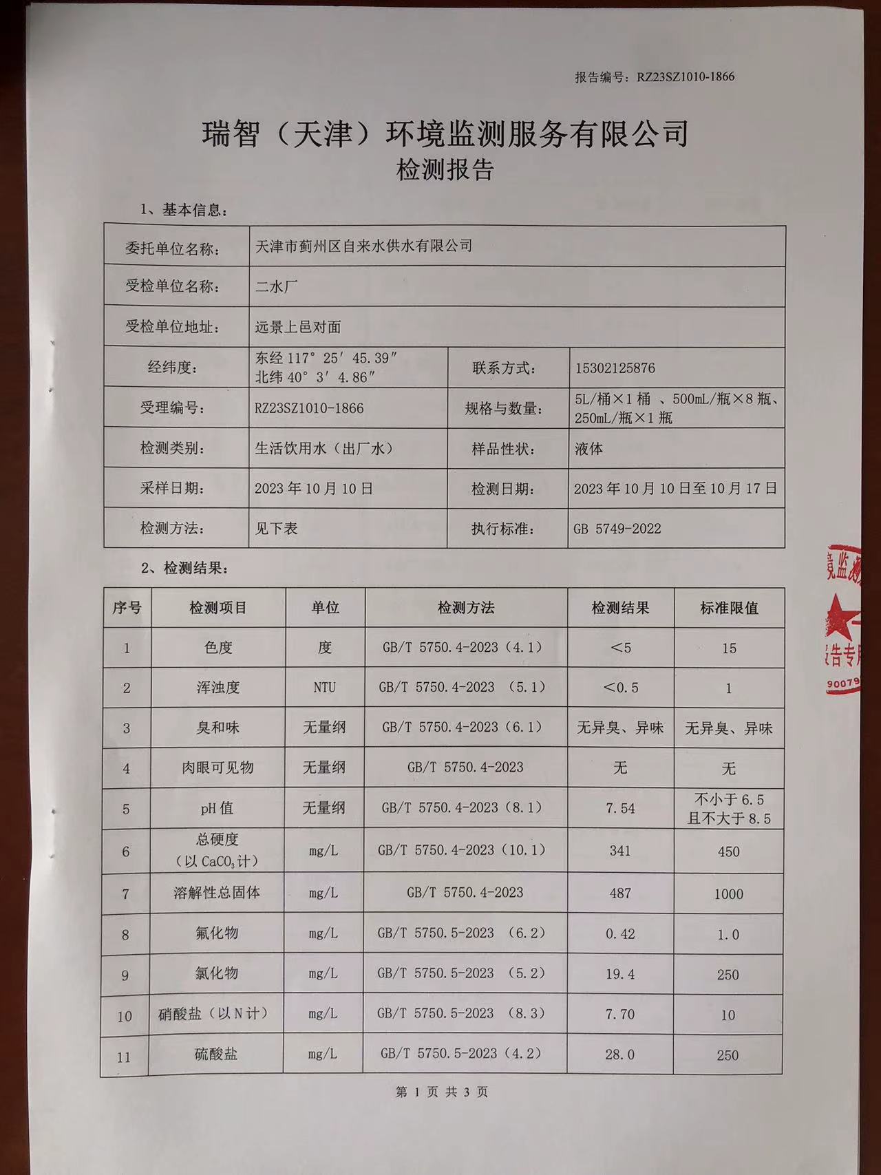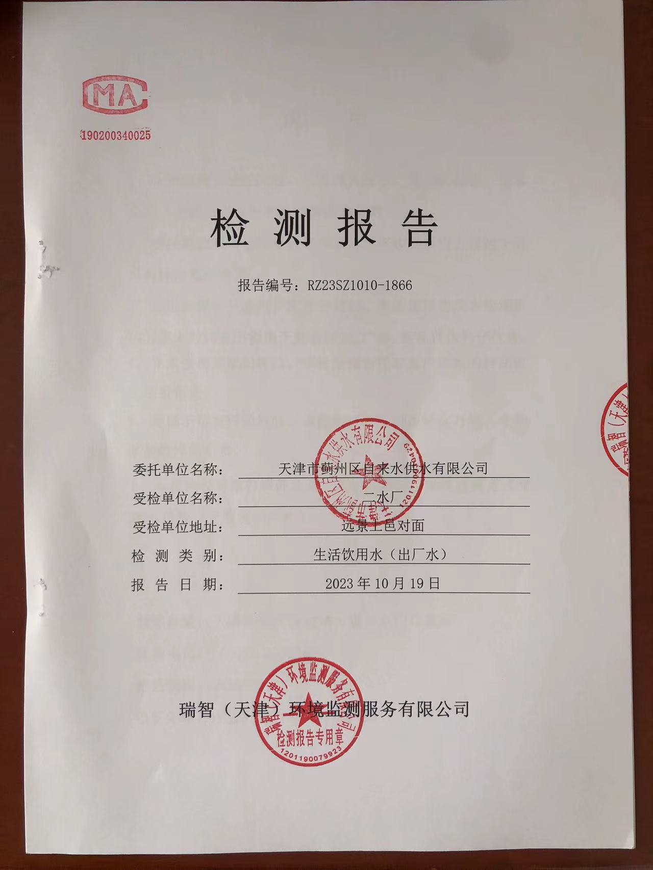 2023年10月份水質(zhì)檢測(cè)報(bào)告
