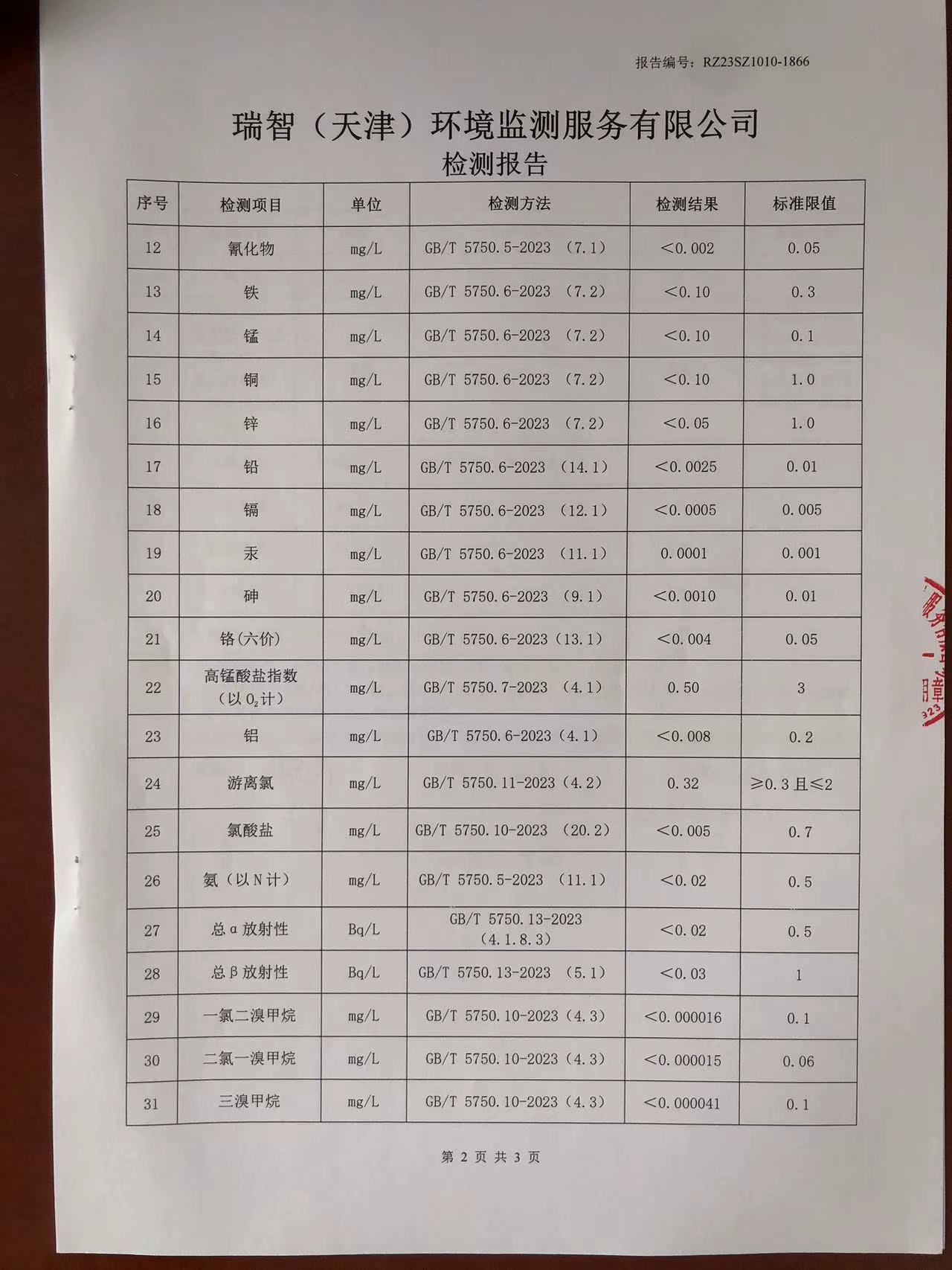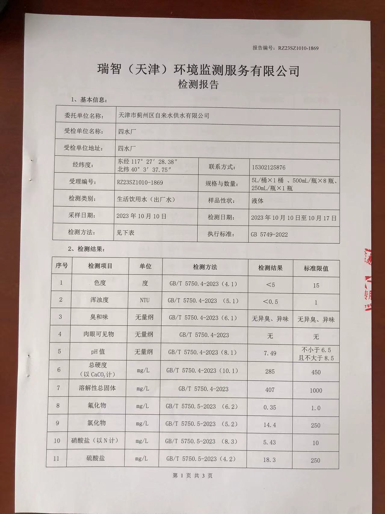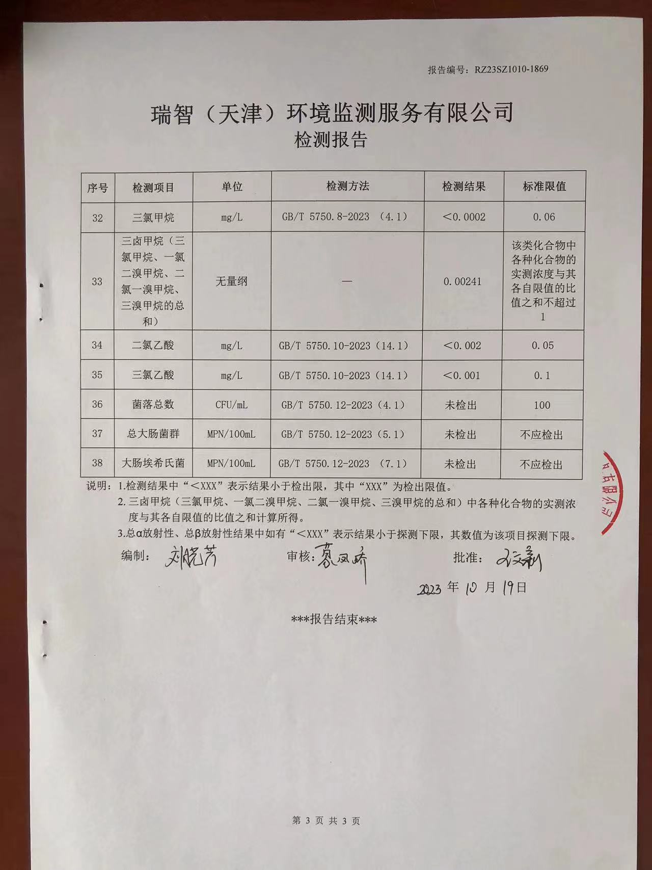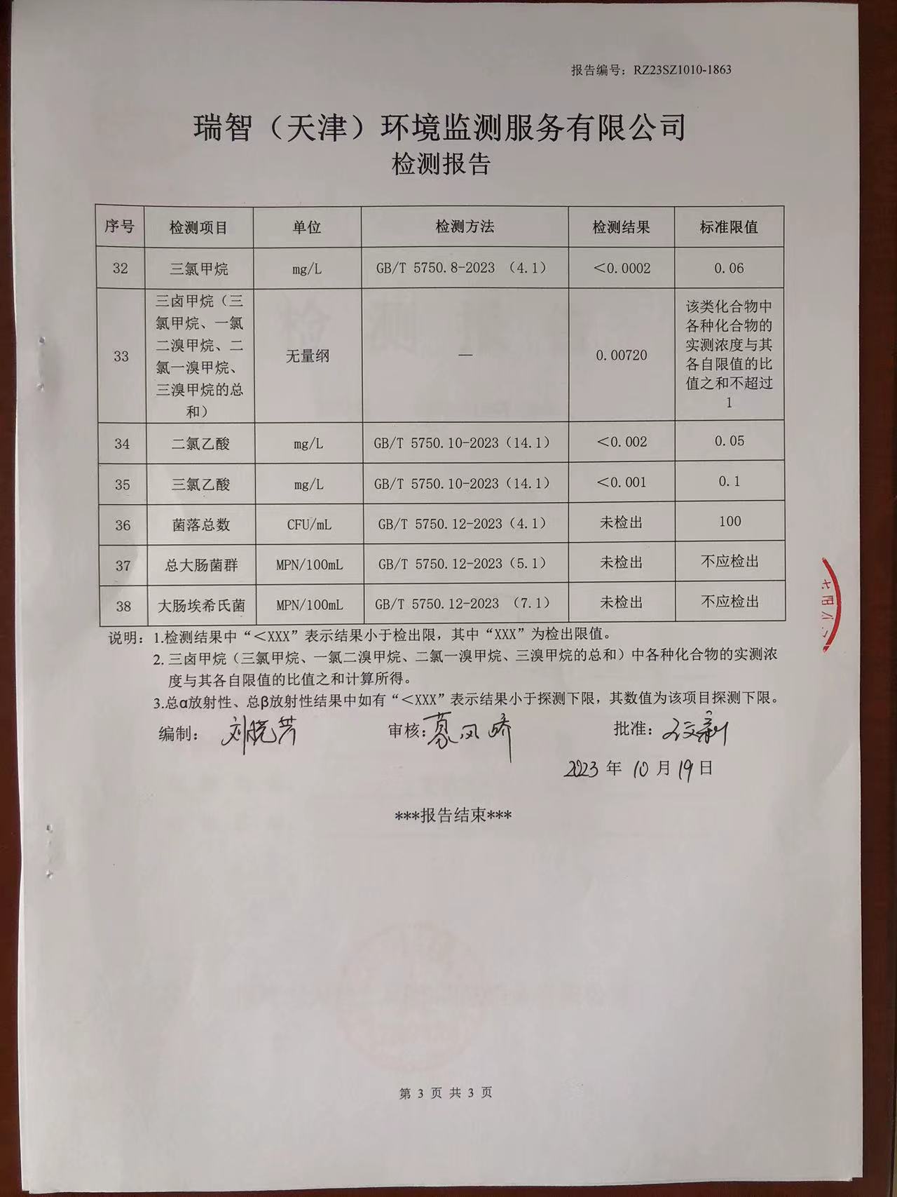 2023年10月份水質(zhì)檢測(cè)報(bào)告