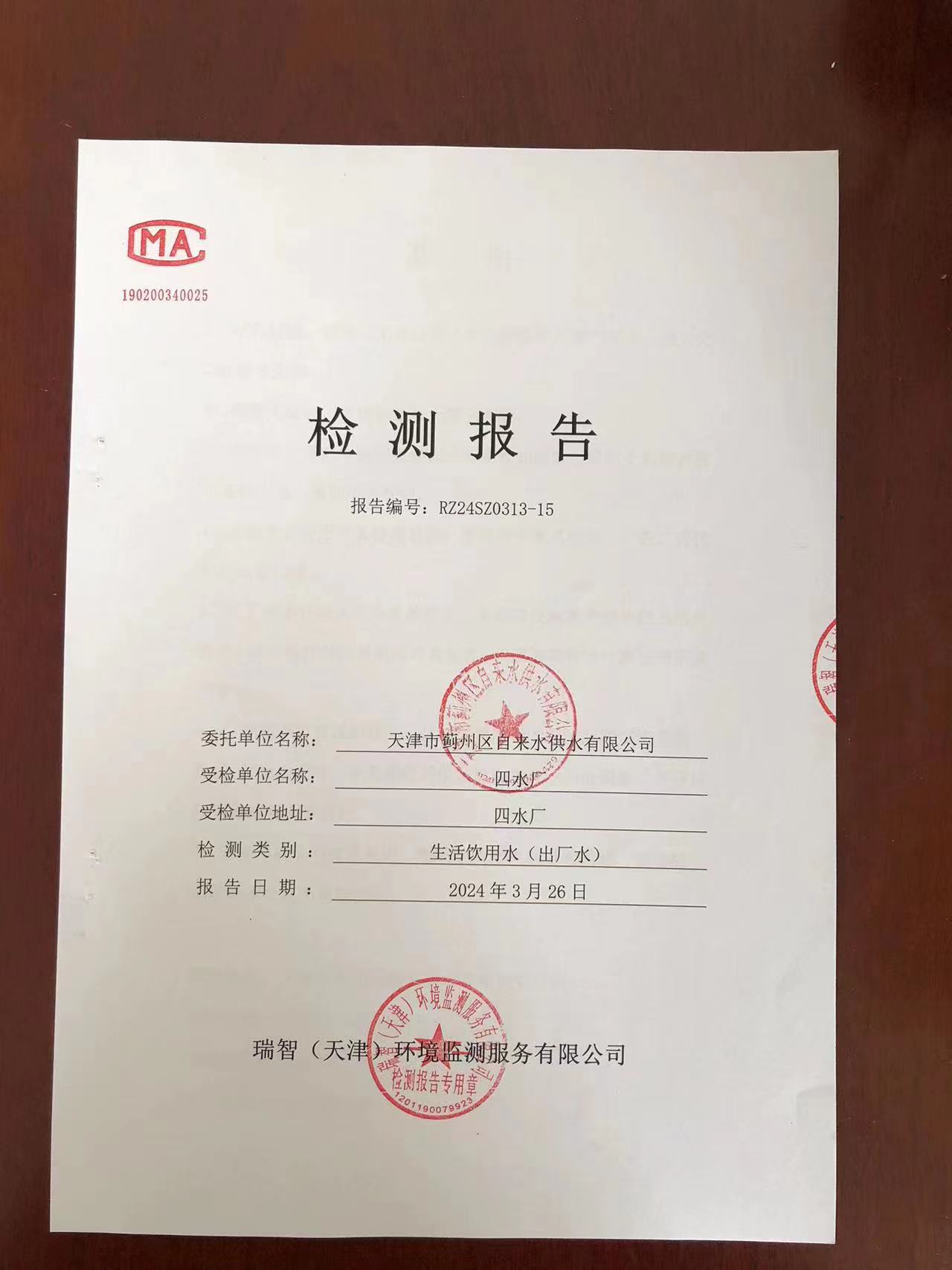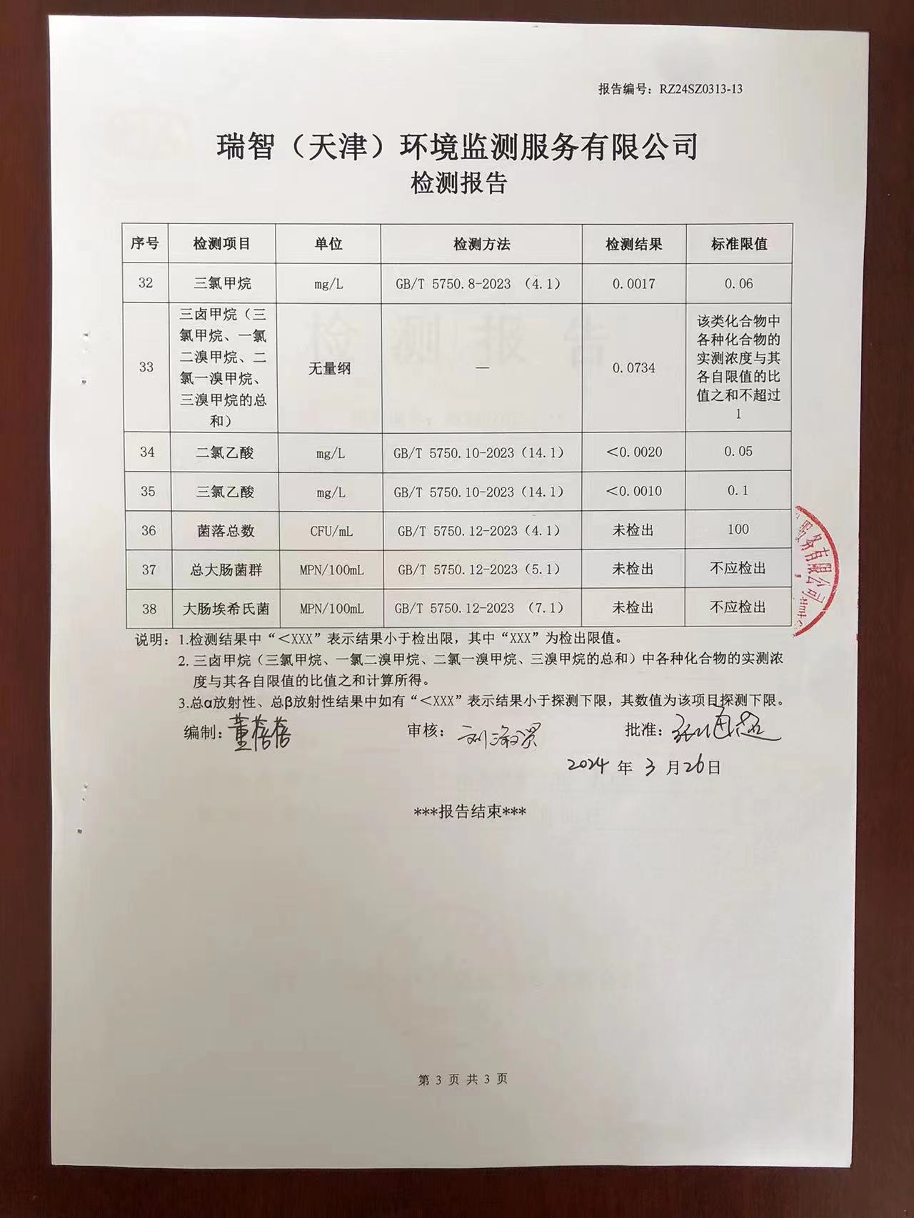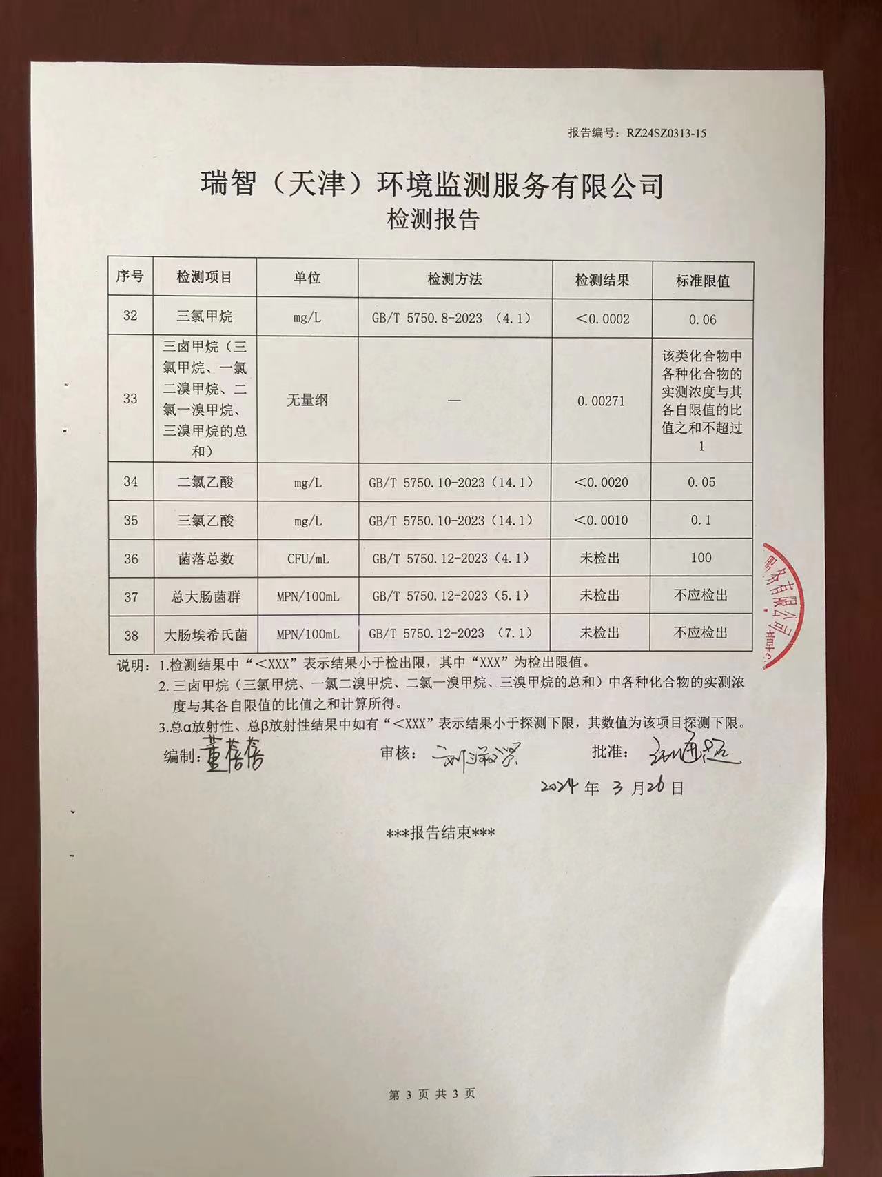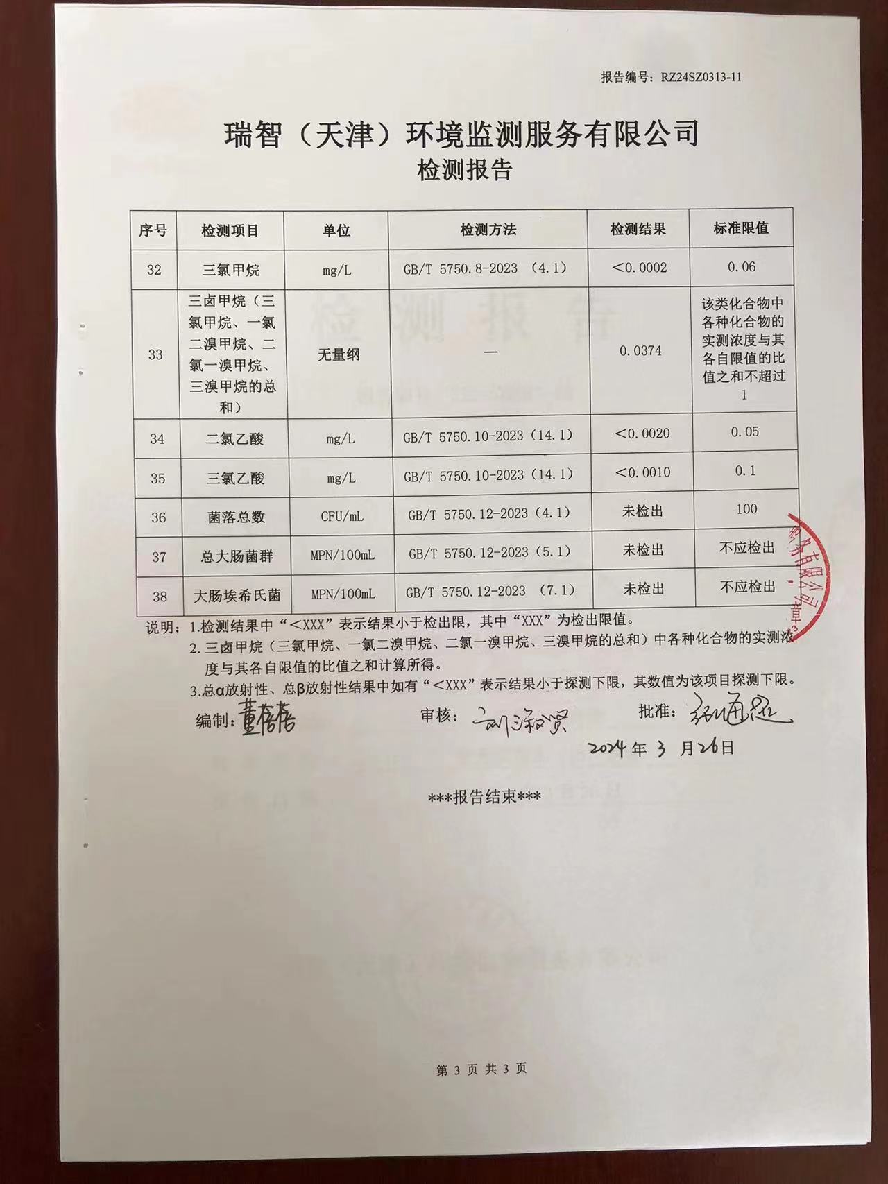 2024年3月份水質(zhì)檢測報告