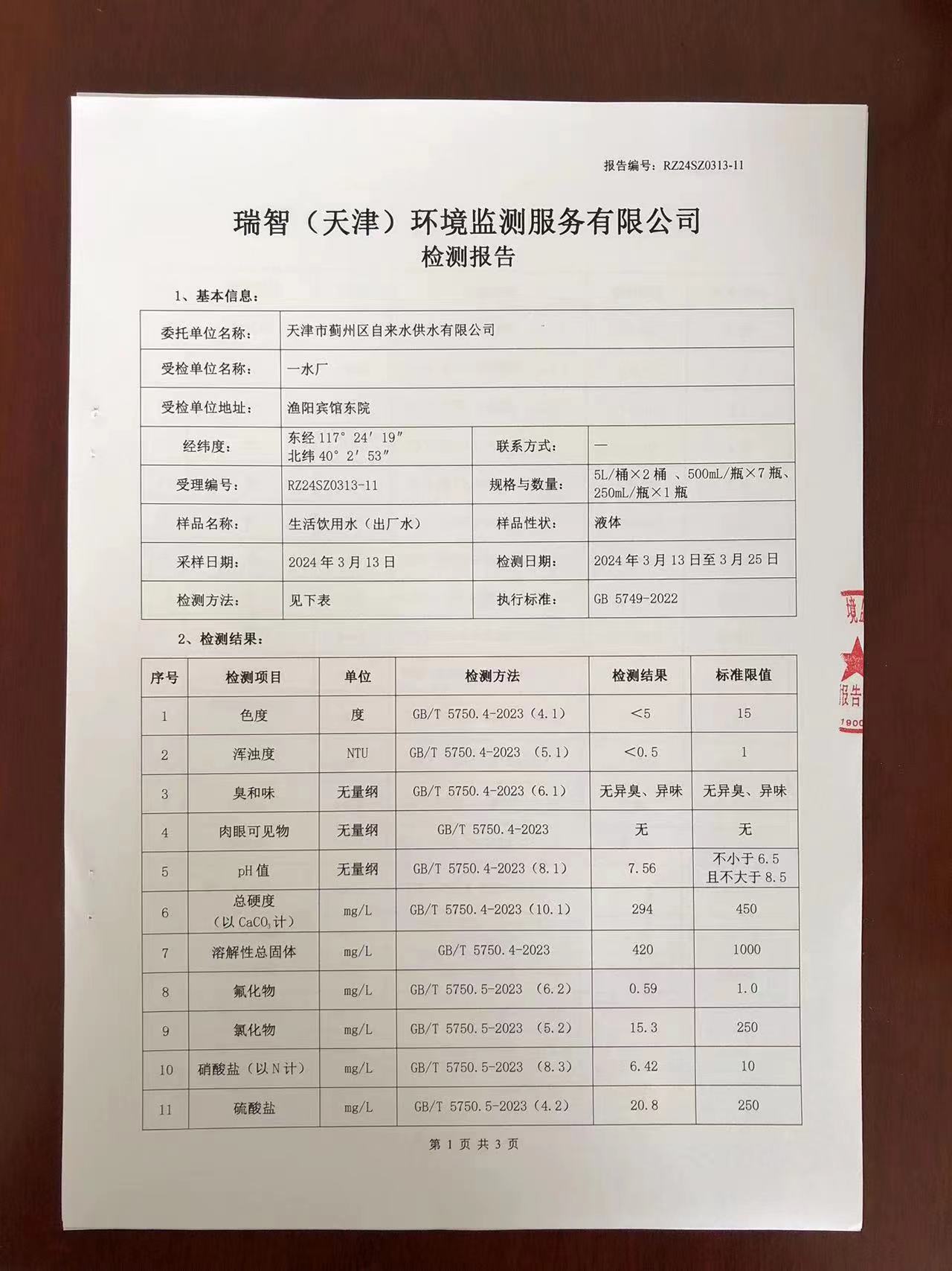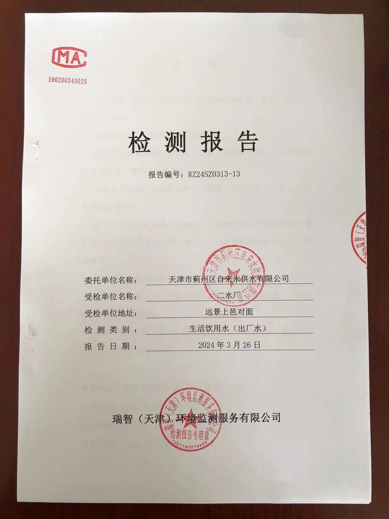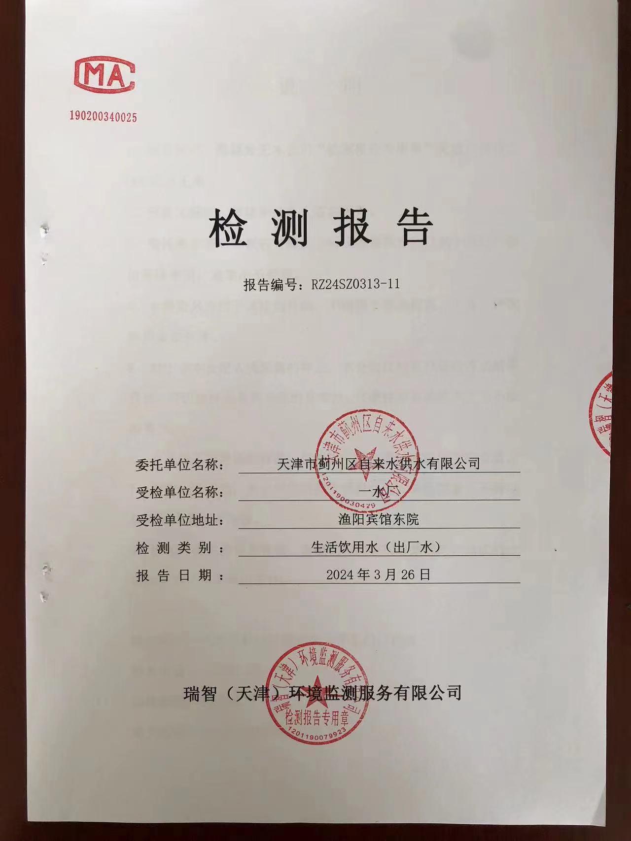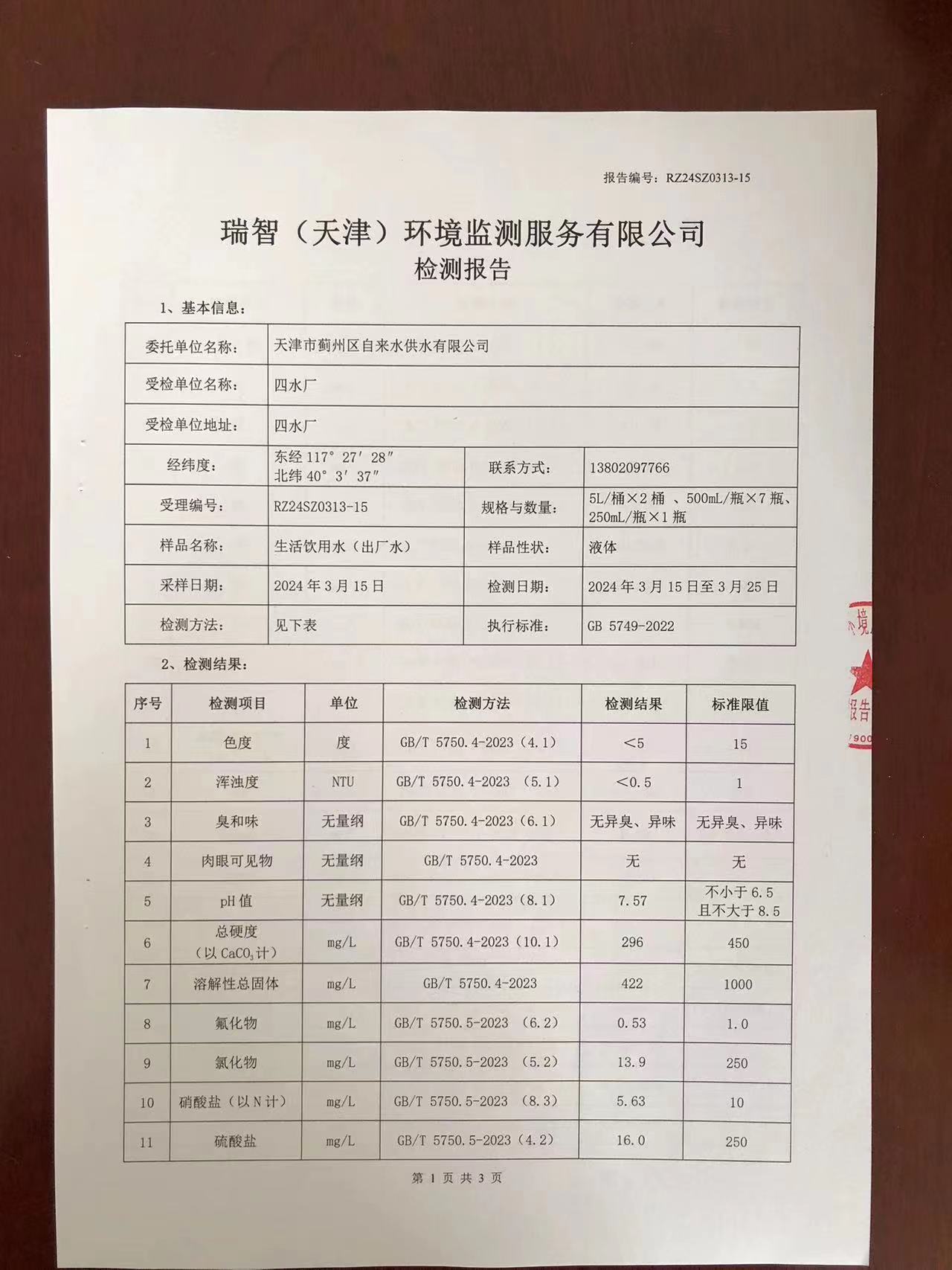 2024年3月份水質(zhì)檢測報告