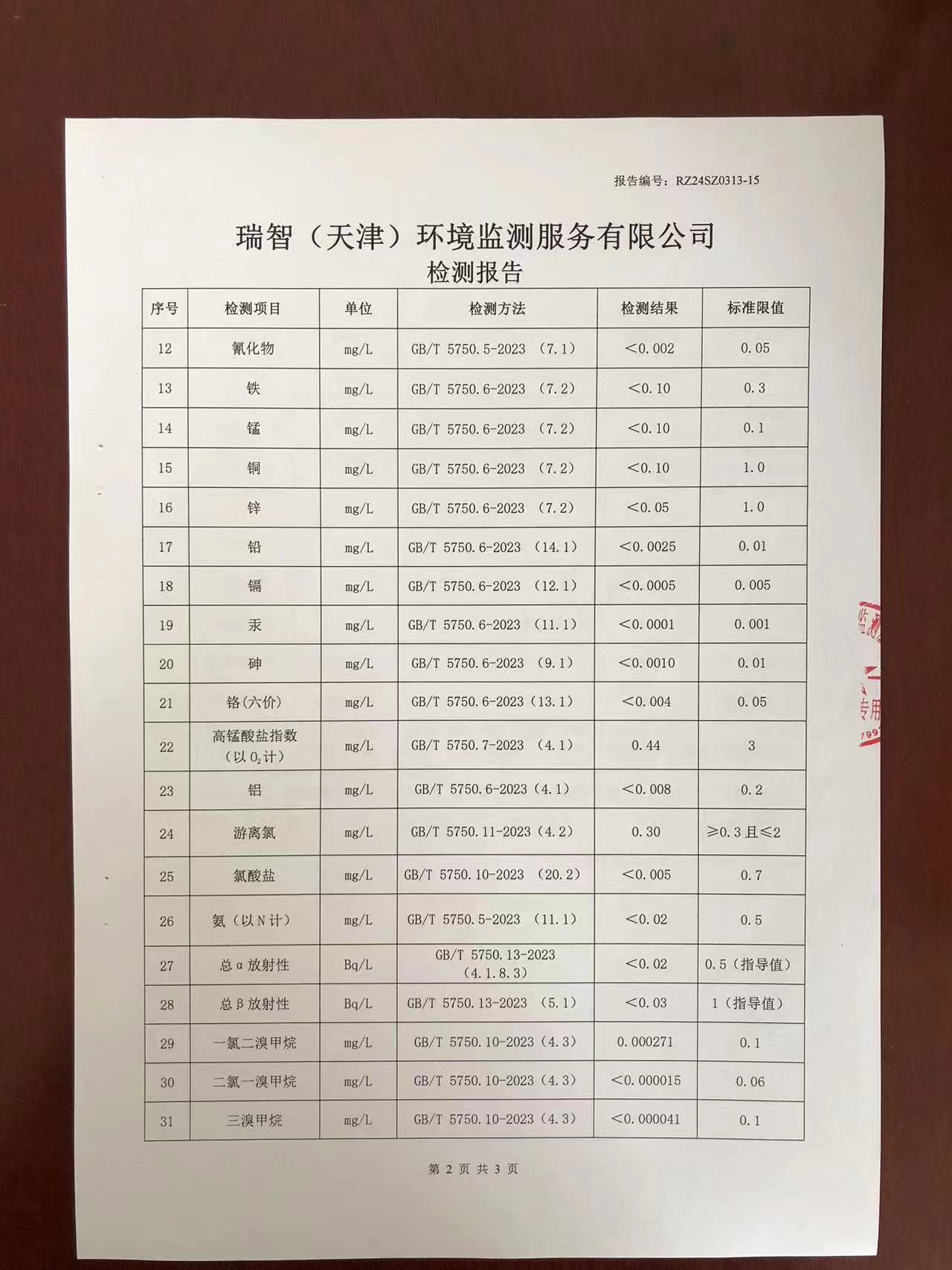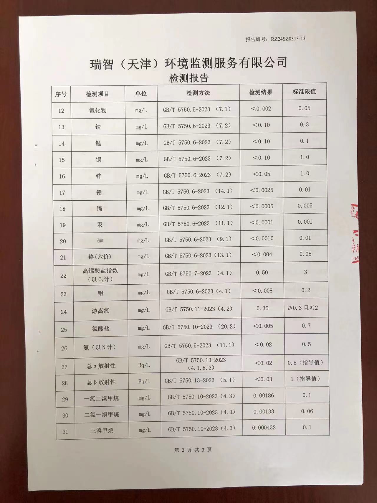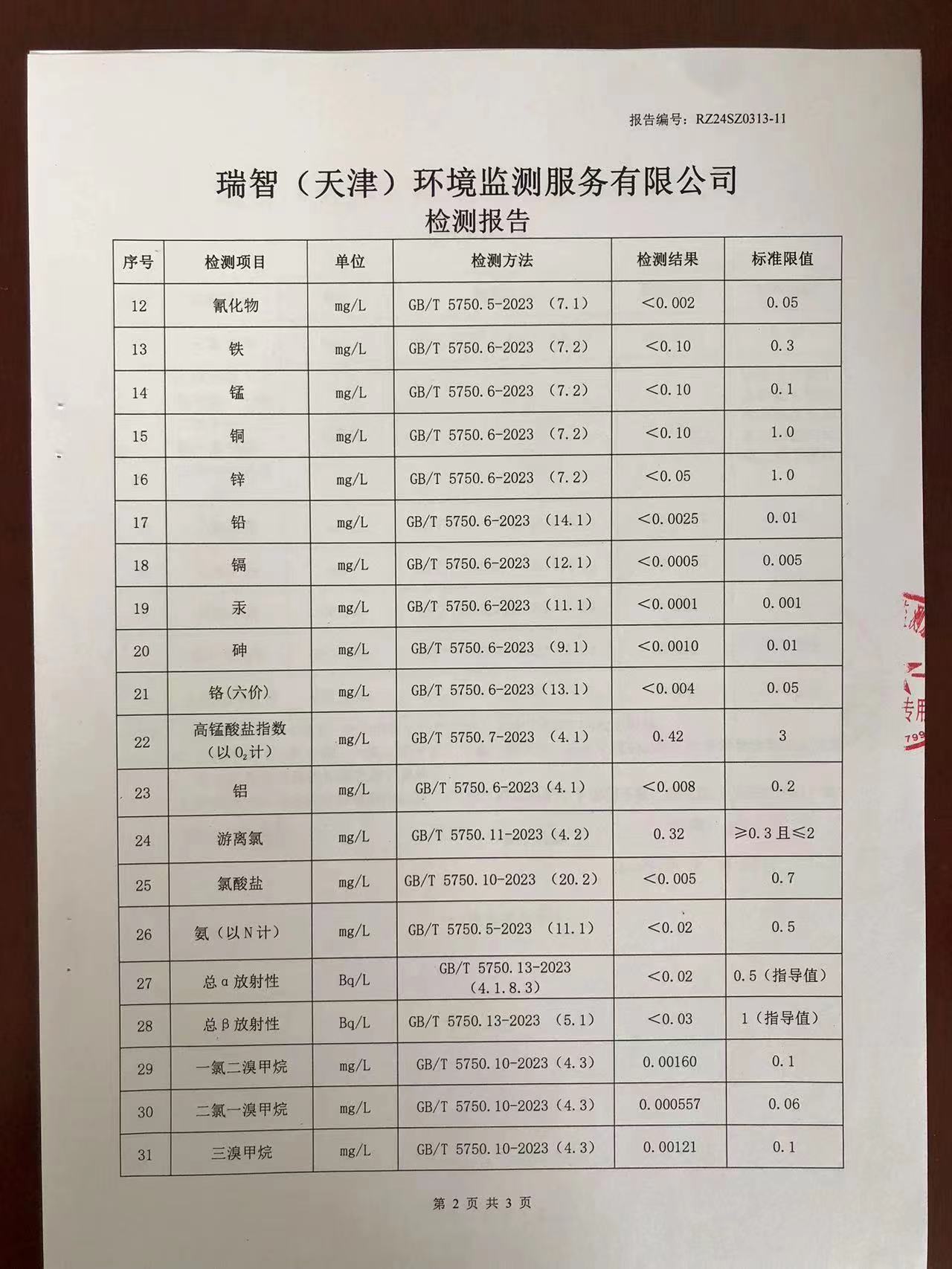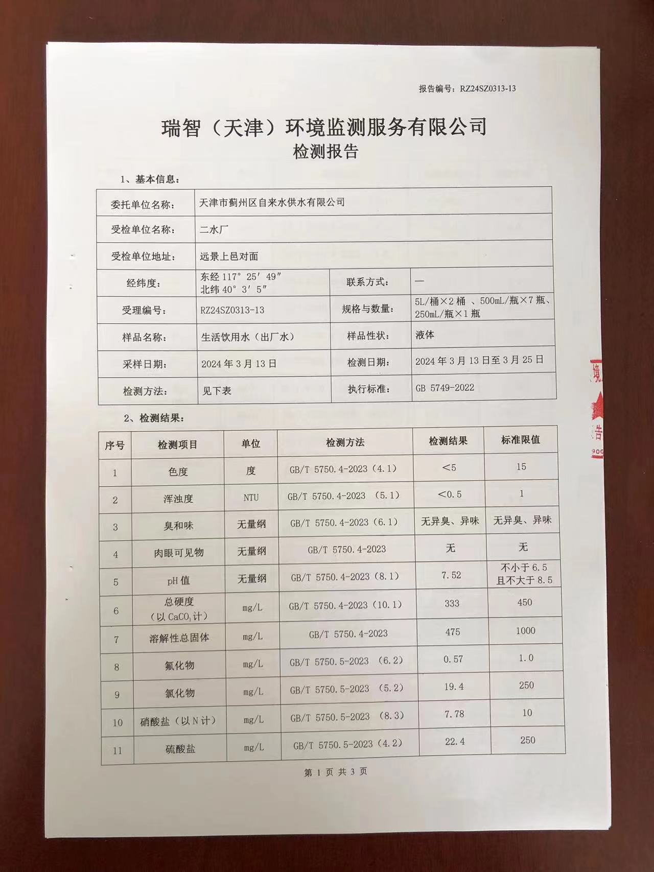 2024年3月份水質(zhì)檢測報告