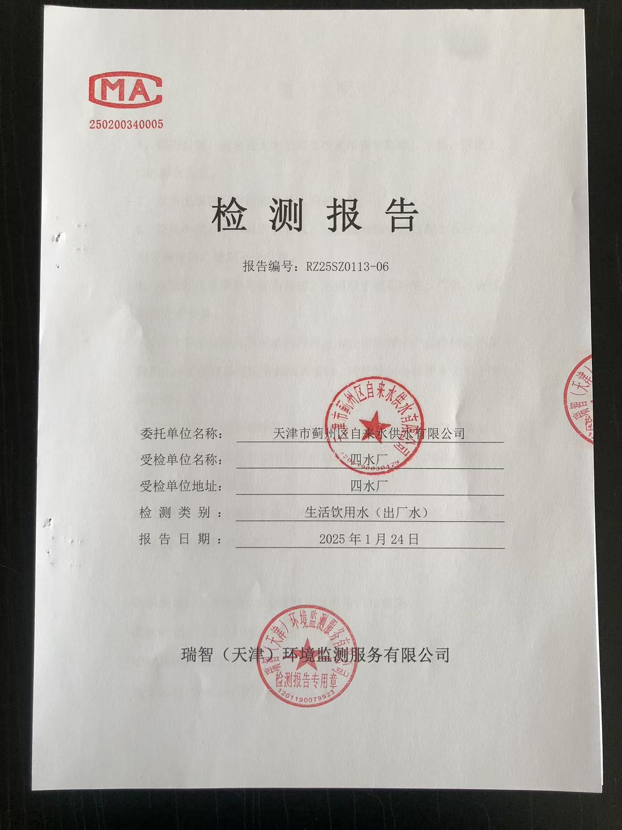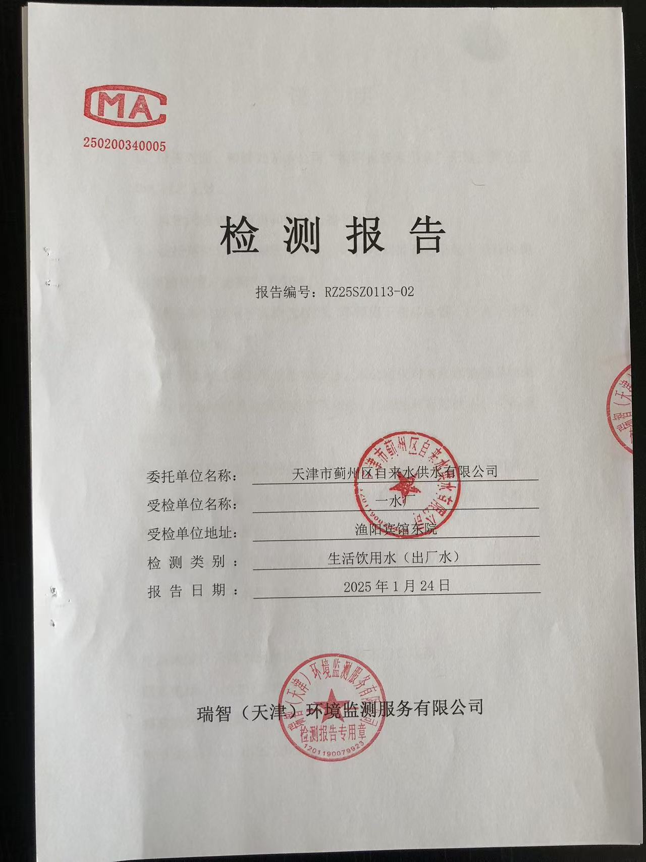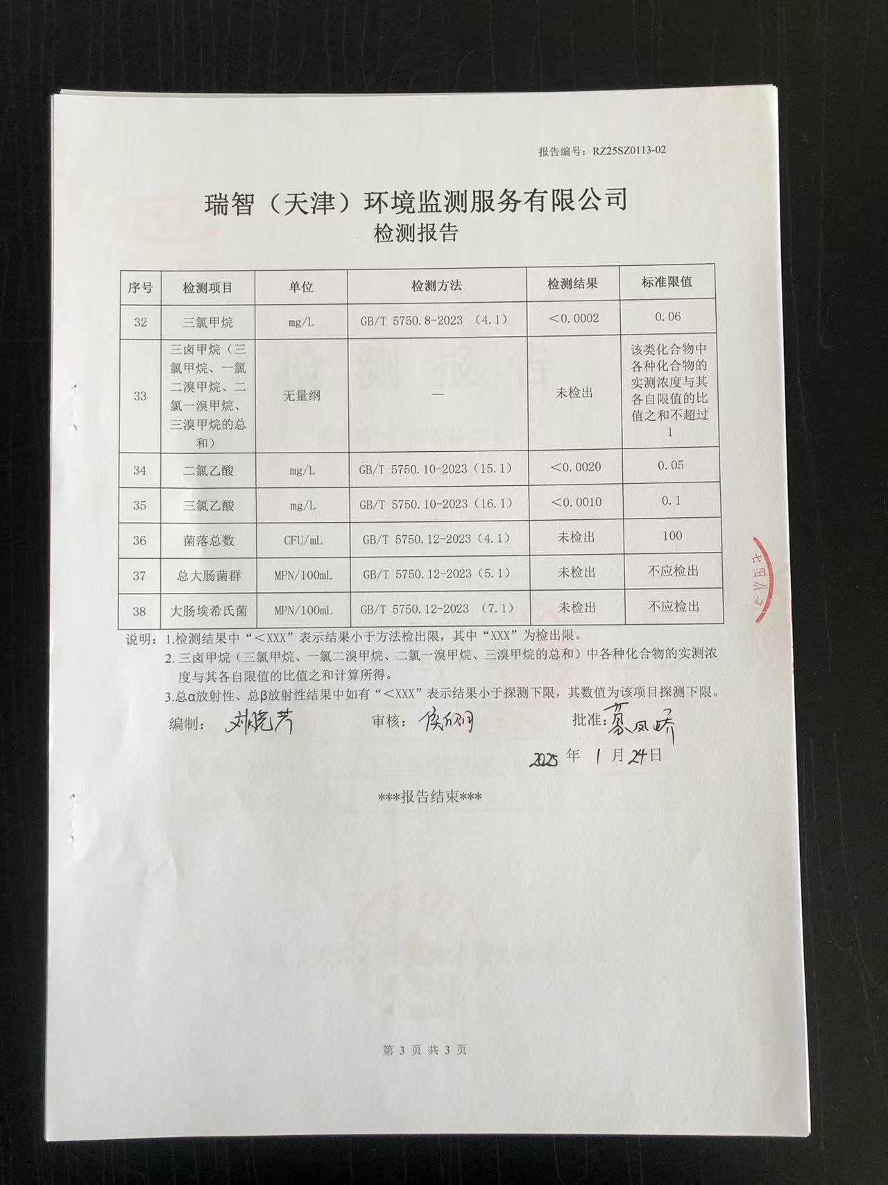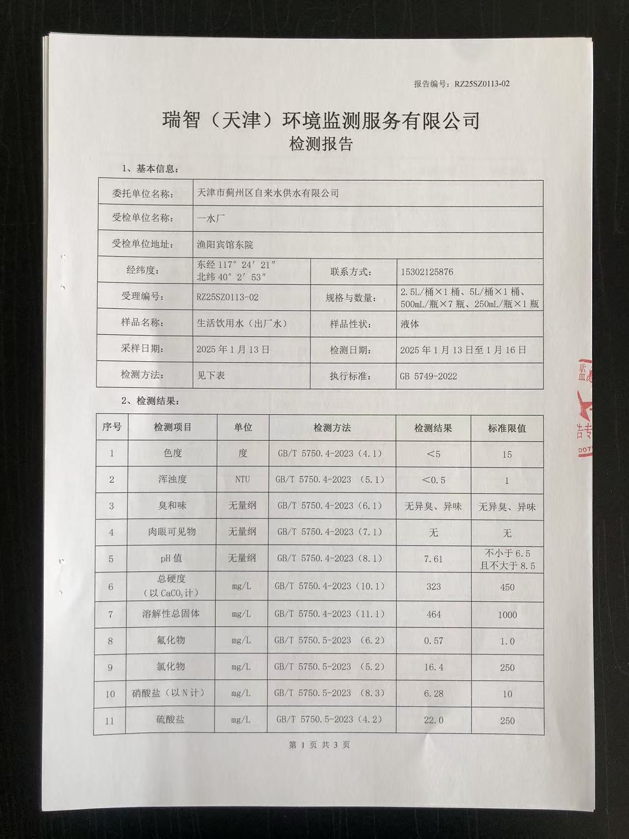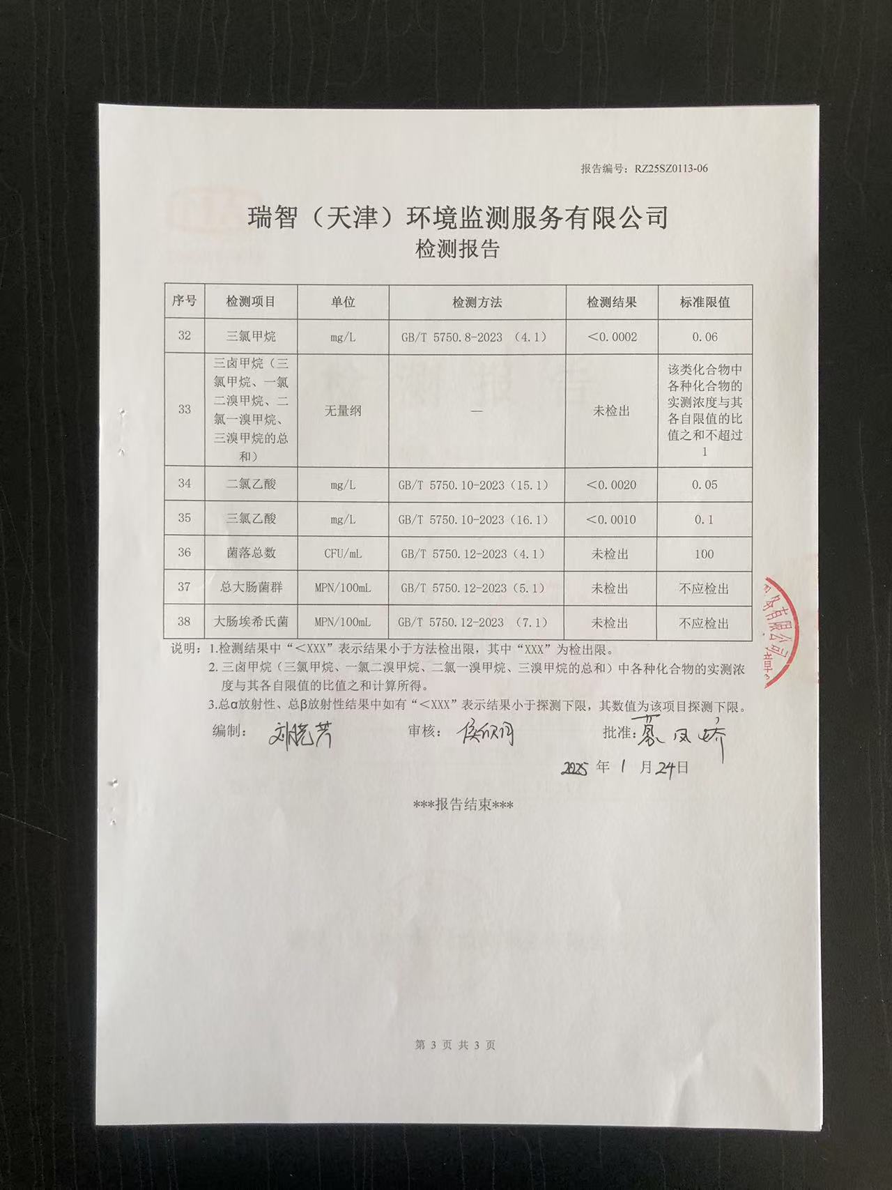 2025年1月份水質(zhì)檢測(cè)報(bào)告