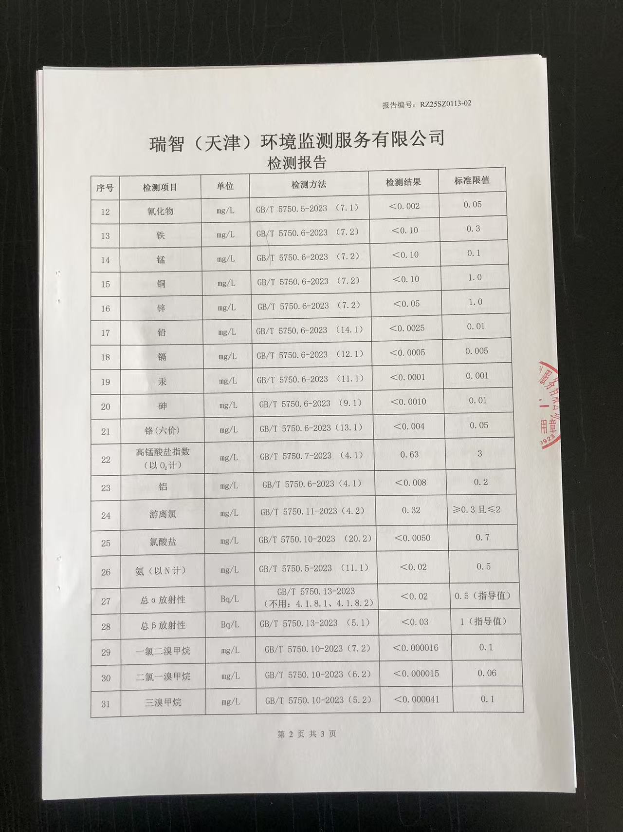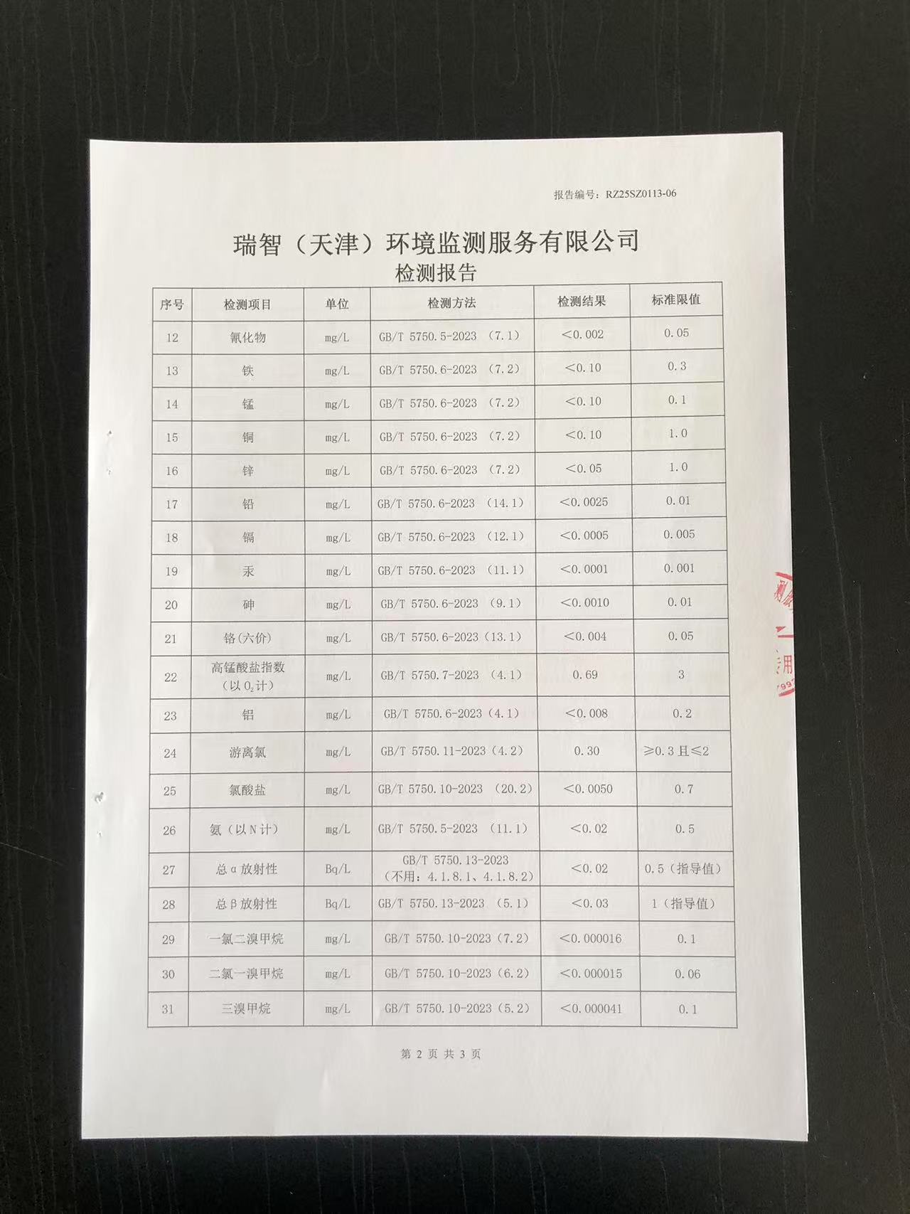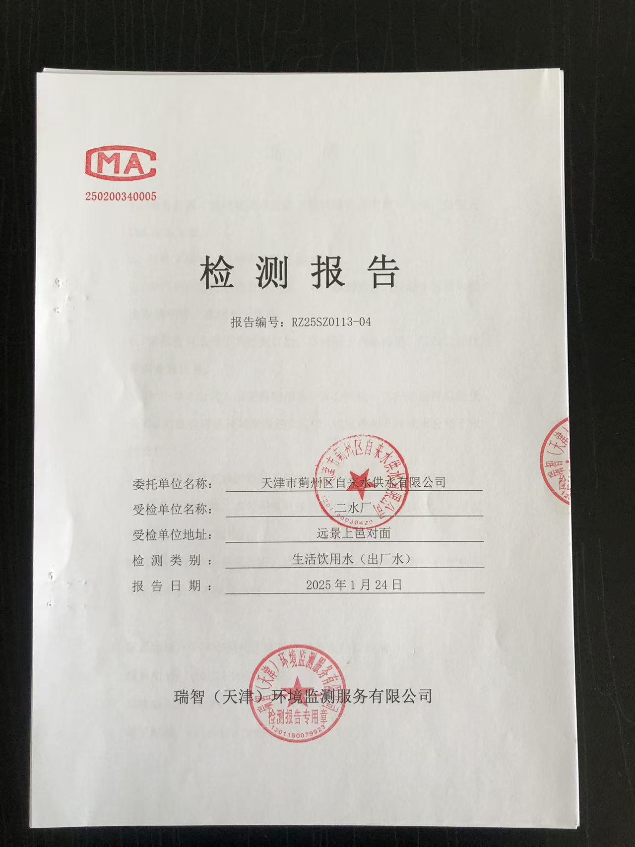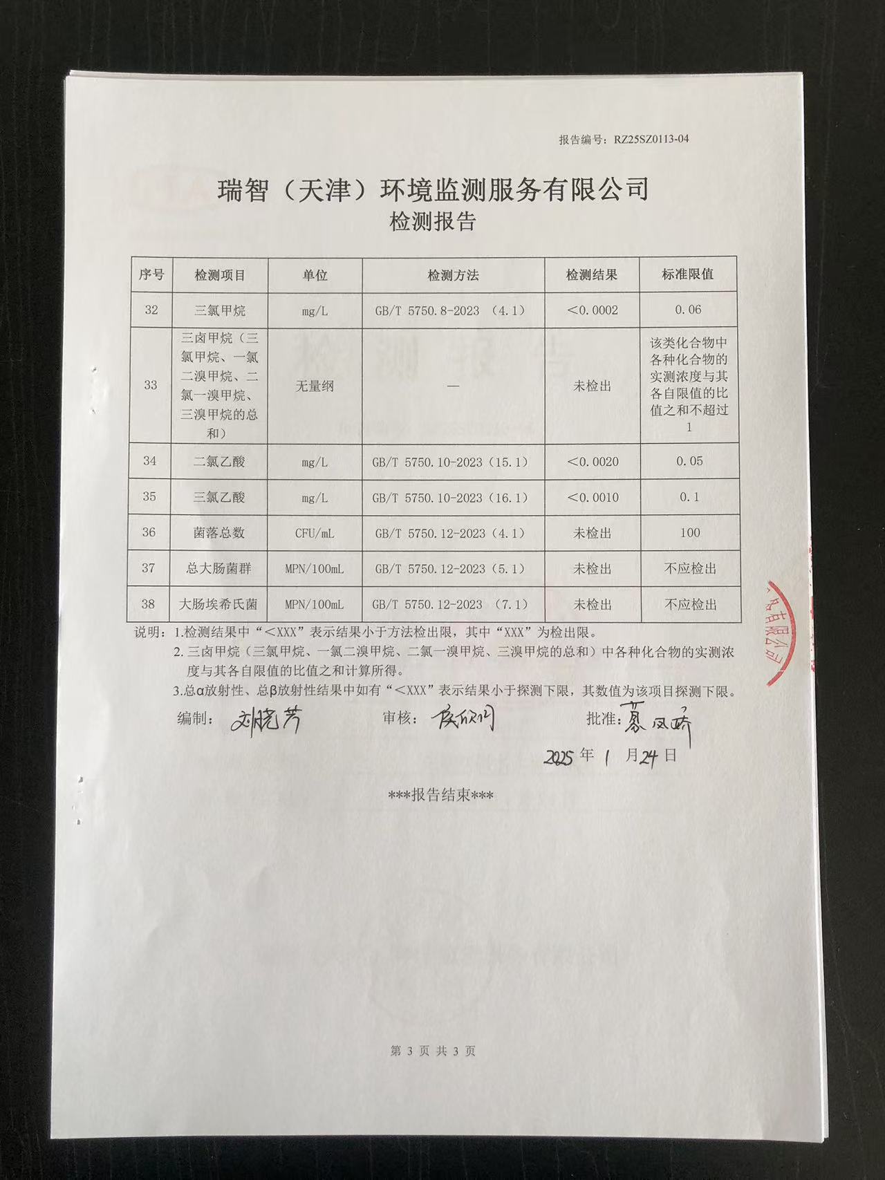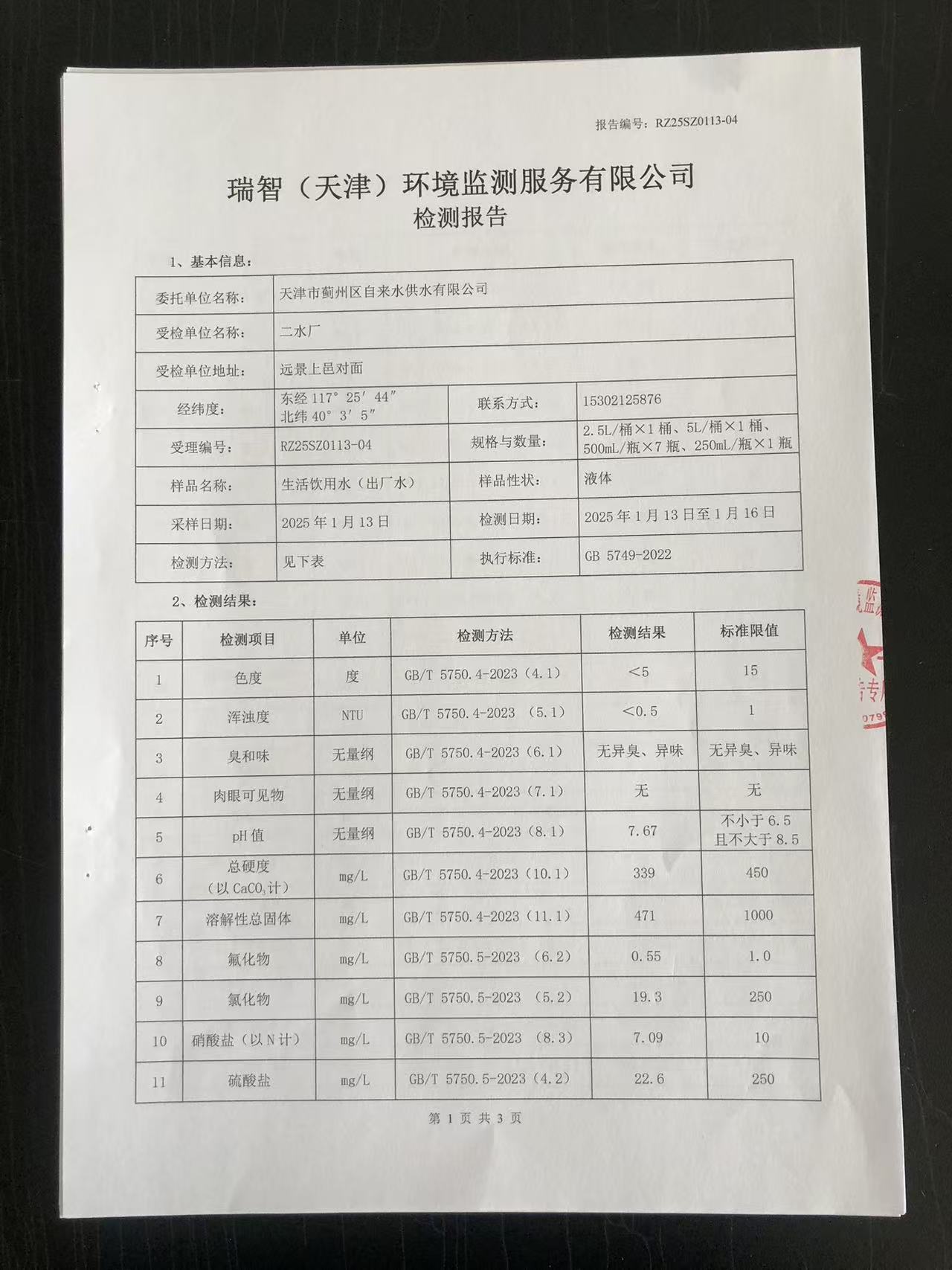 2025年1月份水質(zhì)檢測(cè)報(bào)告