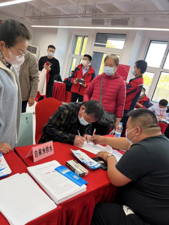 在收到格調(diào)石溪花園小區(qū)項(xiàng)目交房的消息后,我單位領(lǐng)導(dǎo)立即與小區(qū)開發(fā)商進(jìn)行了溝通協(xié)商,由單位領(lǐng)導(dǎo)帶隊(duì),組織水費(fèi)核收大廳、工程科多名工作人員,于10月31日至11月2日前往交房現(xiàn)場(chǎng)給居民用戶辦理供用水手續(xù)。我單位工作人員現(xiàn)場(chǎng)為交房新用戶辦理供水手續(xù),并詳細(xì)講解智慧生活A(yù)PP下載及使用方法并附贈(zèng)APP使用手冊(cè),耐心解答用戶提出的疑問。